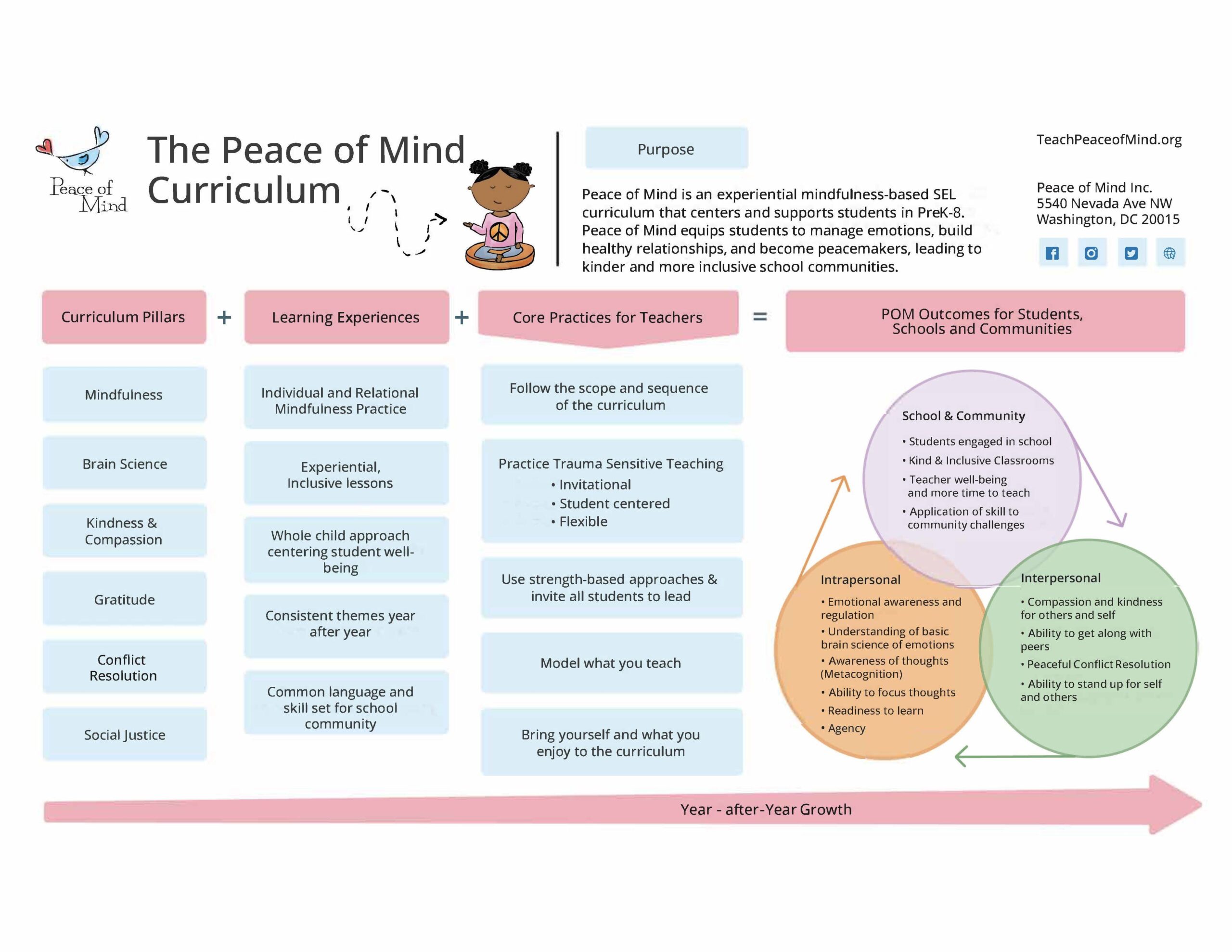 Peace of Mind Inc. was founded in 2014 and, after successfully piloting the curriculum in other schools, established as a nonprofit organization in 2018 to share the Peace of Mind Program more widely.
